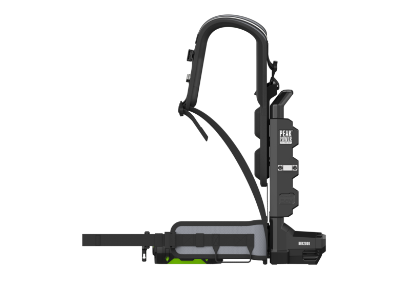 Holding two EGO batteries for extended runtime and extra power when you need it, it is designed for professional all-day use with a padded, balanced harness that helps reduce fatigue.